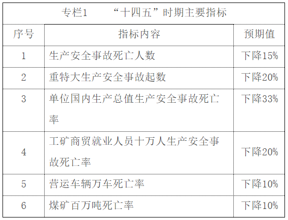 国务院安全生产委员会关于印发 《“十四五”国家安全生产规划》的通知 安委〔2022〕7号 各省、自治区、直辖市人民政府,新疆生产建设兵团,国务院安委会各成员单位,有关中央企业: 《“十四五”国家安全生产规划》已经国务院领导同志同意,现印发给你们,请认真贯彻执行。 国务院安全生产委员会 2022年4月6日 “十四五”国家安全生产规划 为全面贯彻落实习近平总书记关于安全生产工作的一系列重要指示和党中央、国务院决策部署,根据《中华人民共和国安全生产法》、《中华人民共和国国民经济和社会发展第十四个五年规划和2035年远景目标纲要》、《“十四五”国家应急体系规划》等法律法规和文件,制定本规划。 一、现状与形势 (一)取得的进展。 以习近平同志为核心的党中央始终高度重视安全生产工作。“十三五”期间,习近平总书记站在新的历史方位,就安全生产工作作出了一系列重要指示批示,提出了一系列新思想新观点新思路,反复告诫要牢固树立安全发展理念,正确处理安全和发展的关系,坚持发展决不能以牺牲安全为代价这条红线。根据深化党和国家机构改革部署,整合11个部门的13项职责组建应急管理部,将国家煤矿安全监察局更名为国家矿山安全监察局,矿山、危险化学品等重点行业领域安全监管监察体制进一步完善,监管监察能力得到加强。中共中央、国务院出台了《关于推进安全生产领域改革发展的意见》,中共中央办公厅、国务院办公厅印发了《地方党政领导干部安全生产责任制规定》,党政同责、一岗双责、齐抓共管、失职追责的安全生产责任体系全面建立。以危险化学品、矿山、消防、交通运输、城市建设、工业园区、危险废物等为重点的安全生产专项整治持续稳步推进。科技强安专项行动初见成效,危险化学品、煤矿等重点行业领域安全生产风险监测预警系统不断完善,安全生产风险分级管控和隐患排查治理双重预防工作机制逐步建立。在党中央、国务院的坚强领导和各地区、各有关部门的共同努力下,全国安全生产水平稳步提高,事故总量、较大事故、重特大事故持续下降。按可比口径计算,2020年全国各类事故、较大事故和重特大事故起数比2015年分别下降43.3%、36.1%和57.9%,死亡人数分别下降38.8%、37.3%和65.9%。 (二)面临的形势。 “十四五”时期是我国在全面建成小康社会、实现第一个百年奋斗目标之后,乘势而上开启全面建设社会主义现代化国家新征程、向第二个百年奋斗目标进军的第一个五年。立足新发展阶段,党中央、国务院对安全生产工作提出更高要求,强调坚持人民至上、生命至上,统筹好发展和安全两件大事,着力构建新发展格局,实现更高质量、更有效率、更加公平、更可持续、更为安全的发展,为做好新时期安全生产工作指明了方向。但同时也要看到,我国各类事故隐患和安全风险交织叠加、易发多发,安全生产正处于爬坡过坎、攻坚克难的关键时期。一是全国安全生产整体水平还不够高,安全发展基础依然薄弱。一些地方和企业安全发展理念树得不牢,安全生产法规标准执行不够严格。危险化学品、矿山等高危行业产业布局和结构调整优化还不到位,小、散、乱的问题尚未得到根本解决,机械化、自动化和信息化程度不够高,企业本质安全水平仍比较低。二是安全生产风险结构发生变化,新矛盾新问题相继涌现。工业化、城镇化持续发展,各类生产要素流动加快、安全风险更加集聚,事故的隐蔽性、突发性和耦合性明显增加,传统高危行业领域存量风险尚未得到有效化解,新工艺新材料新业态带来的增量风险呈现增多态势。新冠肺炎疫情转入常态化防控阶段,一些企业扩大生产、挽回损失的冲动强烈,容易出现 忽视安全、盲目超产的情况,治理管控难度加大。三是安全生产治理能力还有短板,距离现实需要尚有差距。安全生产综合监管和行业监管职责需要进一步理顺,体制机制还需完善。安全生产监管监察执法干部和人才队伍建设滞后,发现问题、解决问题的能力不足。重大安全风险辨识及监测预警、重大事故应急处置和抢险救援等方面的短板突出。 二、指导思想、基本原则与规划目标 (一)指导思想。 以习近平新时代中国特色社会主义思想为指导,全面贯彻落实党的十九大和十九届历次全会精神,增强“四个意识”、坚定“四个自信”、做到“两个维护”,紧紧围绕统筹推进“五位一体”总体布局和协调推进“四个全面”战略布局,坚持人民至上、生命至上,坚守安全发展理念,从根本上消除事故隐患,从根本上解决问题,实施安全生产精准治理,着力破解瓶颈性、根源性、本质性问题,全力防范化解系统性重大安全风险,坚决遏制重特大事故,有效降低事故总量,推进安全生产治理体系和治理能力现代化,以高水平安全保障高质量发展,不断增强人民群众的获得感、幸福感、安全感。 (二)基本原则。 系统谋划,标本兼治。坚持总体国家安全观,树立系统观念,统筹发展和安全,将安全发展贯穿于经济社会发展各领域和全过程,努力塑造与安全发展相适应的生产生活方式,筑牢本质安全防线,构建新安全格局,更好地实现发展质量、结构、规模、速度、效益、安全相统一。 源头防控,精准施治。坚持目标导向、问题导向和结果导向,科学把握安全风险演化规律,坚持底线思维,在补短板、堵漏洞、