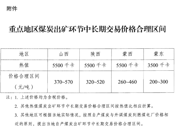 国家发改委4月27日消息,2月24日,国家发展改革委印发《关于进一步完善煤炭市场价格形成机制的通知》(发改价格〔2022〕303号),明确了煤炭(动力煤,下同)中长期交易价格的合理区间,其中秦皇岛港下水煤(5500千卡)价格合理区间为每吨570~770元,山西、陕西、蒙西煤炭(5500千卡)出矿环节价格合理区间分别为每吨370~570元、320~520元、260~460元,蒙东煤炭(3500千卡)出矿环节价格合理区间为每吨200~300元。《通知》自5月1日起实施。 近日,国家发展改革委作出专项部署,要求相关省份发展改革委高度重视,指导督促企业严格落实煤炭中长期合同签订履约要求,采取切实措施保障煤炭中长期交易价格运行在合理区间。各级发展改革部门将全面监测煤炭生产、流通各环节价格,当发现价格超出合理区间时,立即采取提醒、约谈、调查、通报等方式,引导煤炭价格回归合理区间;同时,配合市场监管部门,及时查处市场主体捏造散布涨价信息、哄抬价格、价格串通等违法违规行为。 下一步,国家发展改革委将密切监测煤炭市场和价格运行情况,加强煤炭市场价格调控监管,综合运用市场化、法治化手段,引导煤炭价格运行在合理区间,保障能源安全稳定供应。 以下为《通知》原文 国家发展改革委关于进一步完善 煤炭市场价格形成机制的通知 发改价格〔2022〕303号 各省、自治区、直辖市及计划单列市、新疆生产建设兵团发展改革委,有关企业,有关行业协会: 为贯彻落实中央经济工作会议和国务院常务会议精神,根据《价格法》等相关法律法规规定,现就进一步完善煤炭市场价格形成机制及有关事项通知如下: 一、总体思路 煤炭是关系国计民生的重要初级产品,电力供应和安全事关经济社会发展全局。要立足以煤为主的基本国情,使市场在资源配置中起决定性作用,更好发挥政府作用,综合运用市场化、法治化手段,引导煤炭(动力煤,下同)价格在合理区间运行,完善煤、电价格传导机制,保障能源安全稳定供应,推动煤、电上下游协调高质量发展。 二、引导煤炭价格在合理区间运行 煤炭价格由市场形成。国家发展改革委会同有关方面综合采取供需衔接、储备吞吐、进出口调节、运输协调等措施,促进煤炭价格在合理区间运行。当煤炭价格显著上涨或者有可能显著上涨时,将根据《价格法》第三十条等规定,按程序及时启动价格干预措施,引导煤炭价格回归合理区间;当煤炭价格出现过度下跌时,综合采取适当措施,引导煤炭价格合理回升。 从多年市场运行情况看,近期阶段秦皇岛港下水煤(5500千卡)中长期交易价格每吨570~770元(含税)较为合理(晋陕蒙相应煤炭出矿环节中长期交易价格合理区间见附件),煤炭生产、流通、消费能够保持基本平稳,煤、电上下游产业能够实现较好协同发展。适时对合理区间进行评估完善。 三、完善煤、电价格传导机制 引导煤、电价格主要通过中长期交易形成。煤炭中长期交易价格在合理区间内运行时,燃煤发电企业可在现行机制下通过市场化方式充分传导燃料成本变化,鼓励在电力中长期交易合同中合理设置上网电价与煤炭中长期交易价格挂钩的条款,有效实现煤、电价格传导。 四、健全煤炭价格调控机制 (一)提升煤炭市场供需调节能力。进一步完善煤炭产供储销体系,保障煤炭产能合理充裕,完善煤炭中长期合同制度,进一步增强政府可调度储煤能力,完善储备调节机制,适时收储投放,促进煤炭价格在合理区间运行。增强铁路煤炭集疏运配套能力。建立健全煤炭需求侧响应机制,必要时合理调节煤炭消费。 (二)强化煤炭市场预期管理。健全煤炭生产流通成本调查制度和市场价格监测制度,为开展煤炭价格调控、评估完善煤炭价格合理区间提供支撑。及时发布煤炭市场和价格信息,强化煤炭价格指数行为评估和合规性审查。煤炭价格超出合理区间时,充分运用《价格法》等法律法规规定的手段和措施,引导煤炭价格回归合理区间。 (三)加强煤、电市场监管。严禁对合理区间内的煤、电价格进行不当行政干预,严禁违规对高耗能企业给予电价优惠。健全行业信用体系,强化煤、电中长期合同履约监管。密切关注投机资本动向,加强期现货市场联动监管,坚决遏制资本过度投机和恶意炒作。各地发展改革部门要配合市场监管部门,密切关注煤、电市场竞争状态,强化反垄断监管;及时查处市场主体捏造散布涨价信息、囤积居奇、哄抬价格、价格串通等价格违法违规行为;煤炭价格干预措施实施后,严肃查处不执行价格干预措施的违法行为,典型案例公开曝光。 本通知自2022年5月1日起执行。进口煤炭价格不适用本通知规定。